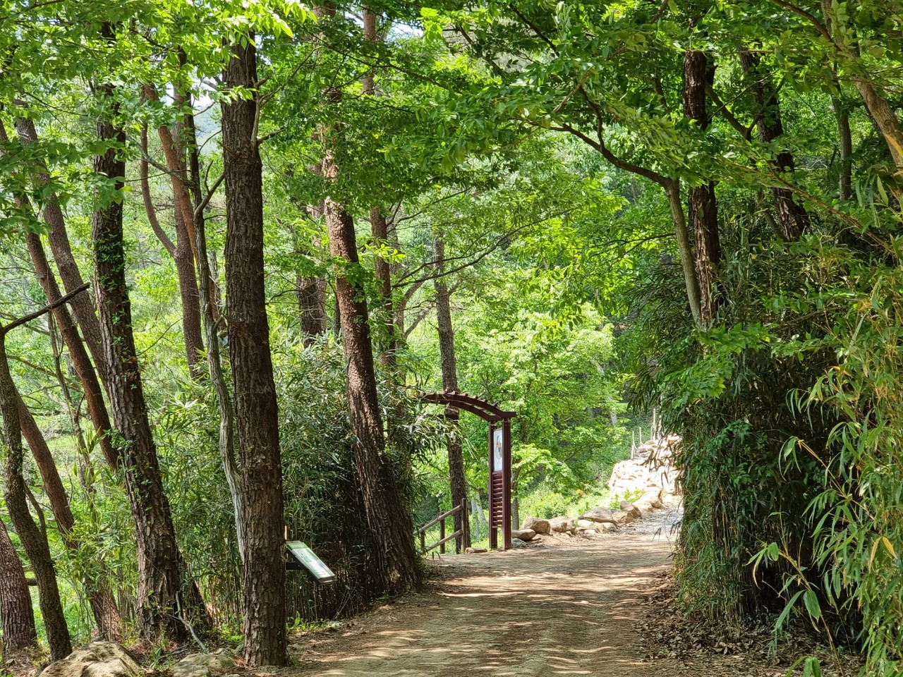 기존의 소나무숲길과 새로 조성한 수변산책로가 연결되어 천은사 상생의 길이 개통되었습니다.