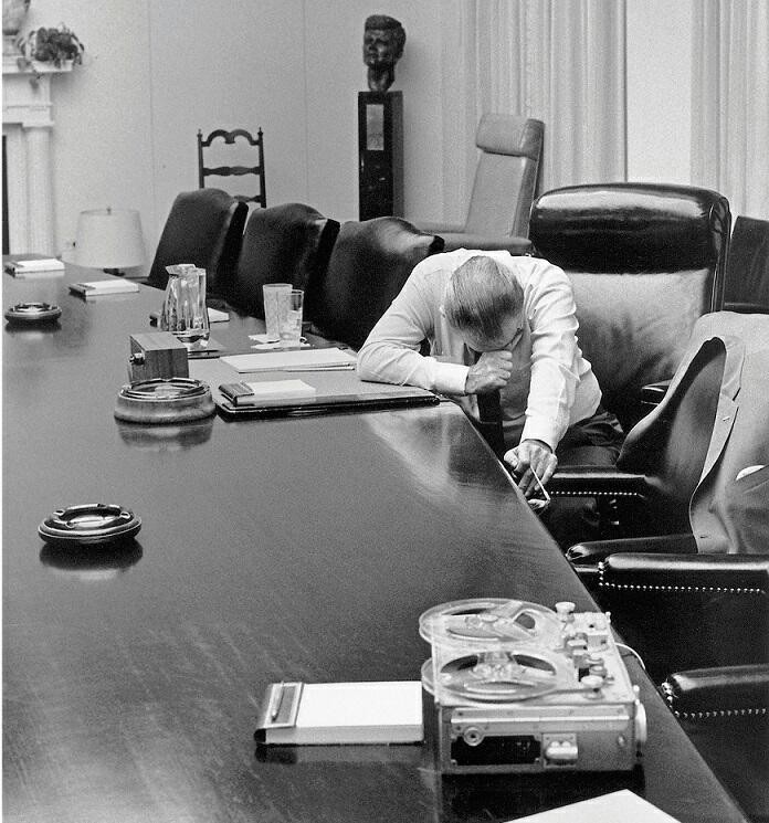 미국 대통령 린든 존슨이 그의 사위 찰스 롭 장군이 베트남에서 보낸 음성 테이프를 듣는..