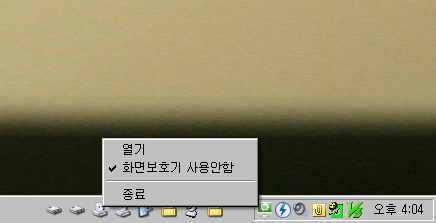 - 트레이 아이콘 우클릭 후 나타나는 메뉴에서도 화면보호기의 동작 여부를 선택 할 수 있습니다.