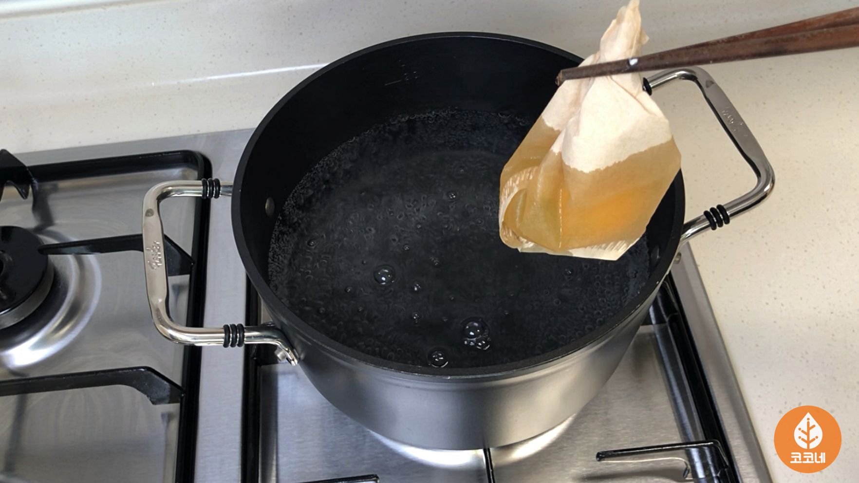 끓는물에 넣으면 멸치맛이 제대로 우러나요.