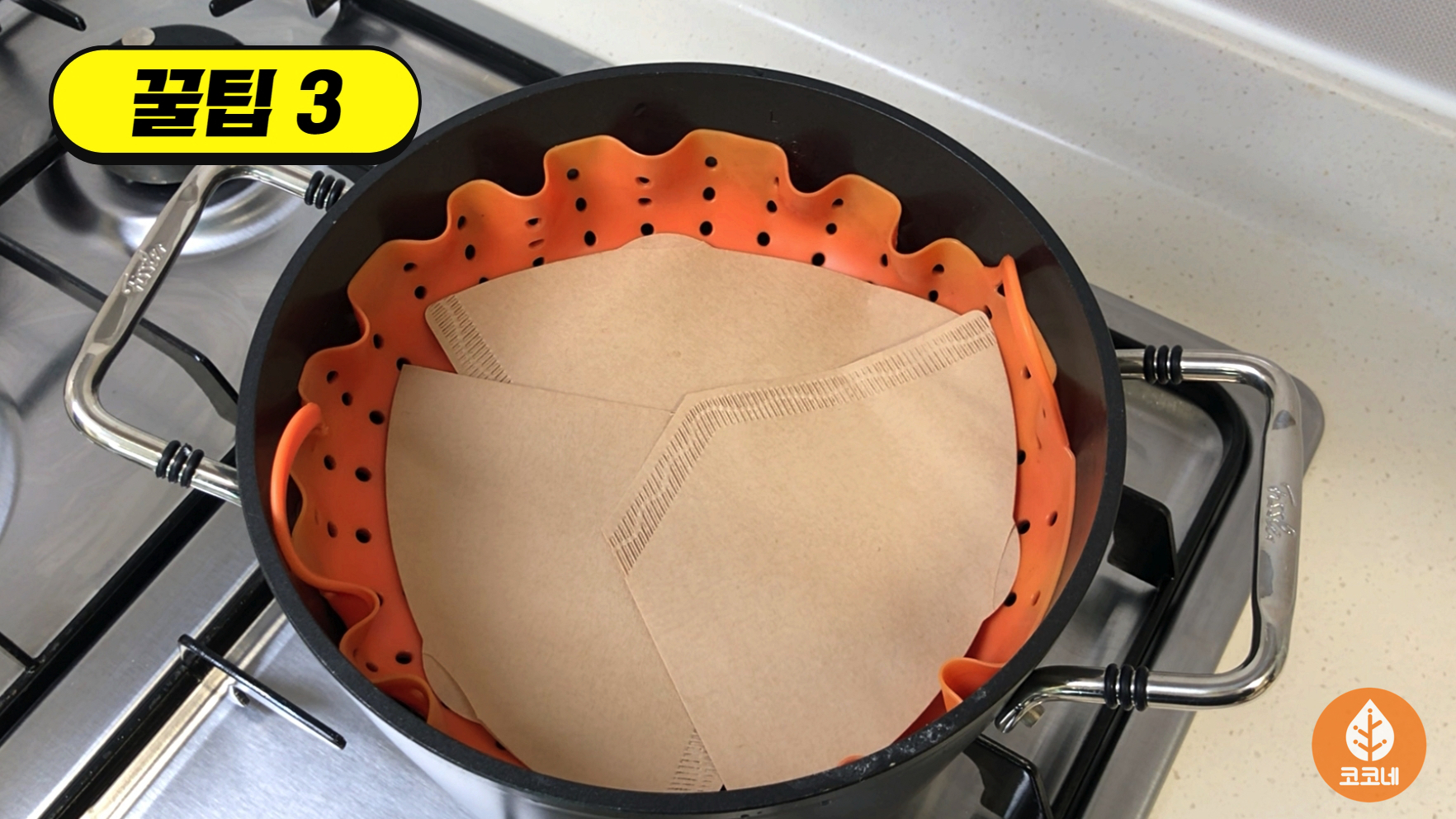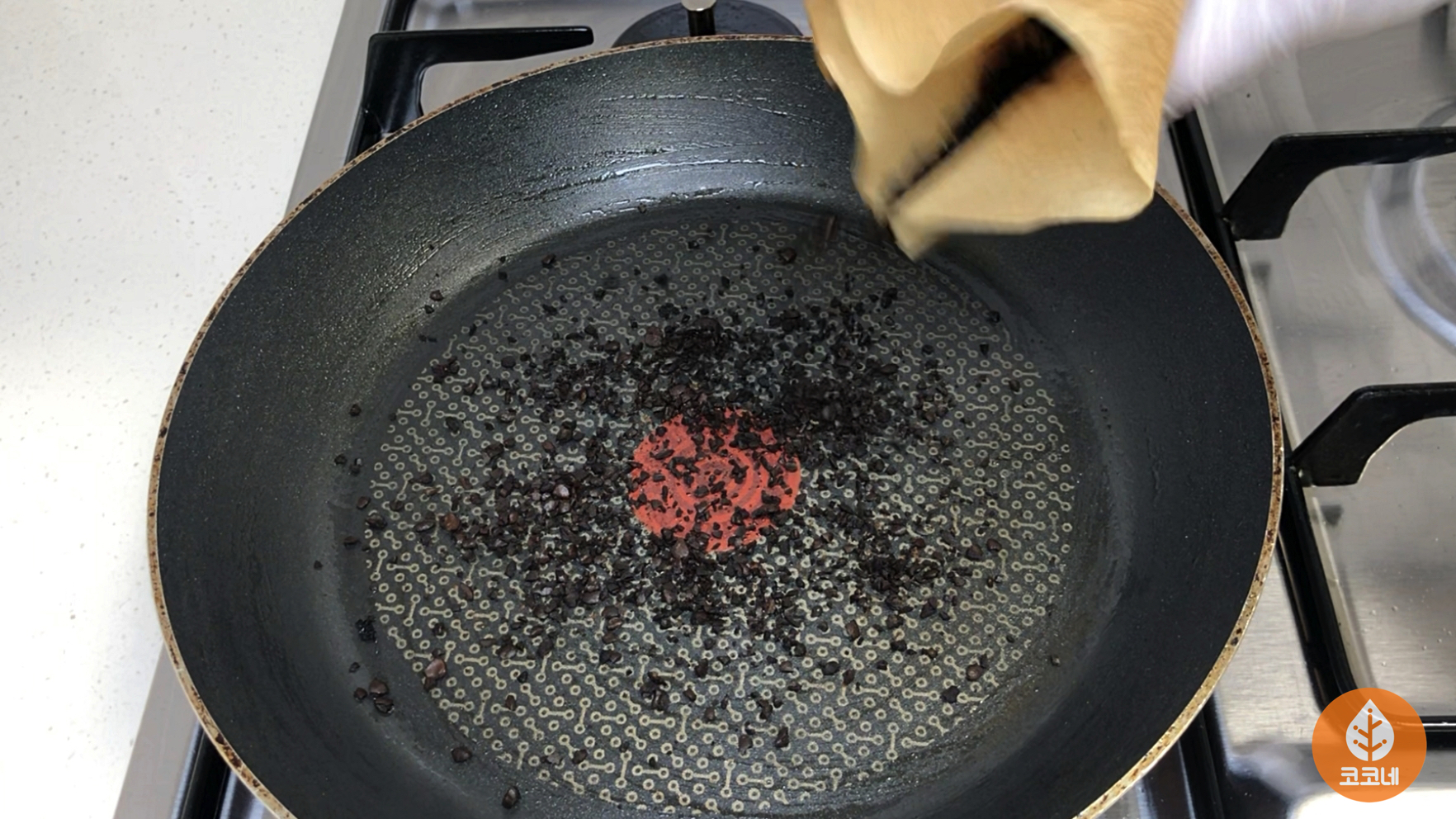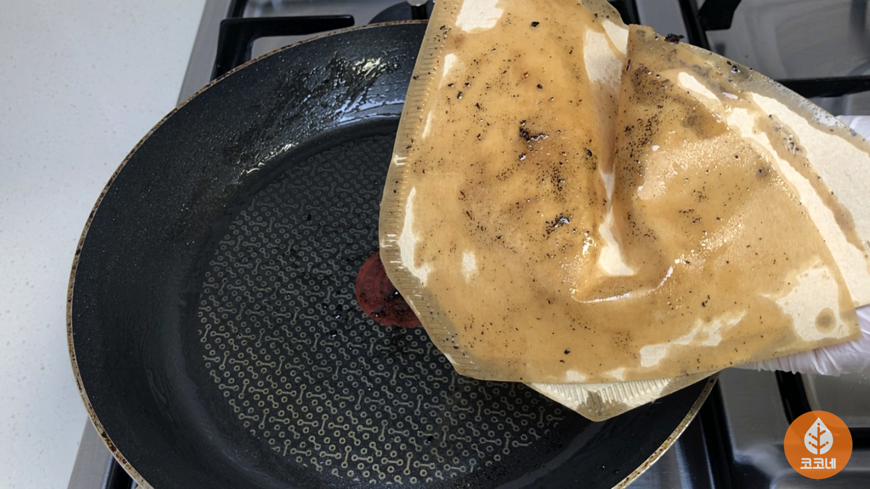 기름기 가득한 프라이팬을 커피필터로 닦아주면