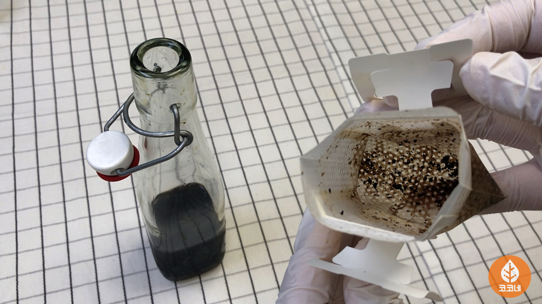 국간장이 커피필터를 지나면서 불순물을 거르고