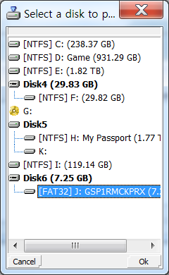 컴퓨터에 연결되어 있는 모든 디스크가 표시됩니다