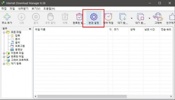 1. IDM 프로그램의 '환경 설정'을 눌러줍니다.