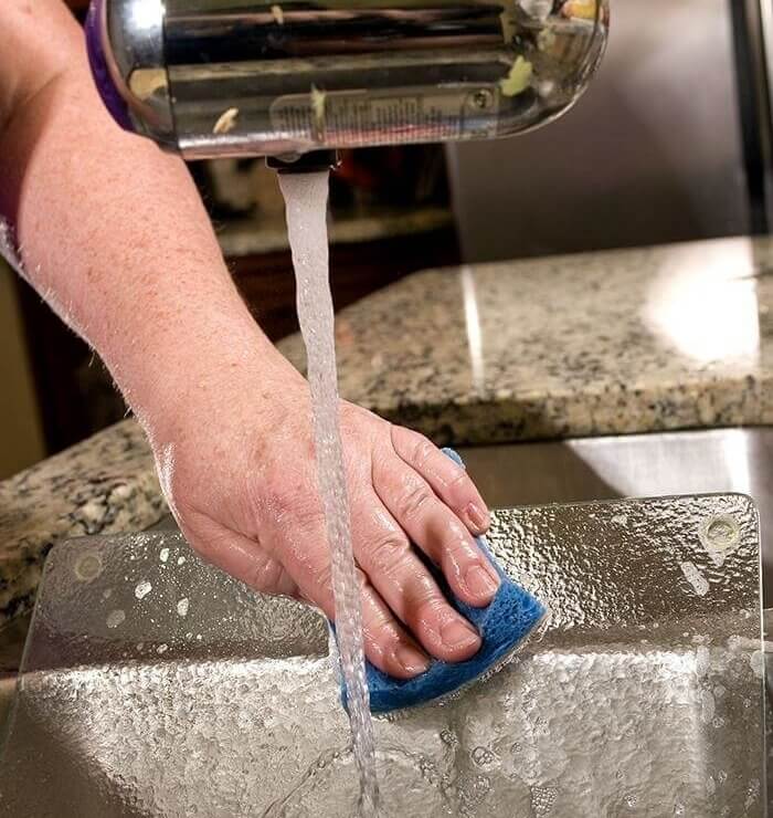 수세미로 문지르는 대신 물과 주방 세제를 넣고 깨끗해질 때까지 작동시킵니다. 다음으로는 물을 부어내고 헹구기만하면됩니다. 이렇게 하면 시간을 절약할 뿐 아니라, 수세미로 문지를때 놓칠 수 있는 음식물 찌꺼기까지 믹서에서 제거할 수 있습니다.