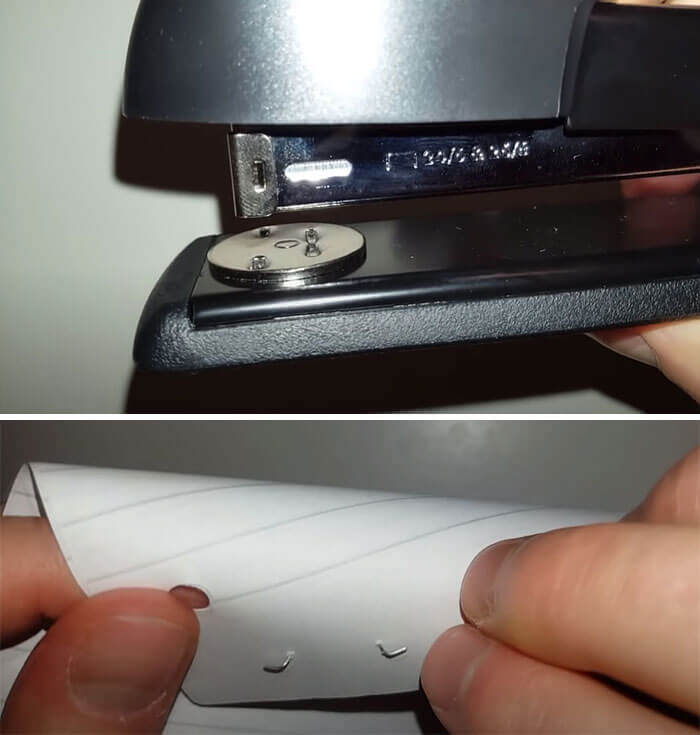 모든 스테이플러에 여러가지 기능이 들어 있었다는 것을 우리가 몰랐듯이, 아마 당신도 알지 못했을 것입니다. 스테이플러에 헐거움을 설정할 수 있는 기능이 있다는 것을 알고 계셨나요? 스테이플러의 금속 판 부분을 돌리시면 철심의 구부러지는 방향을 조정하실 수 있습니다.
