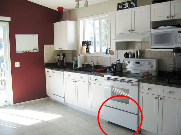 28. 오븐 밑에 있는 서랍은 수납 공간이 아닙니다
