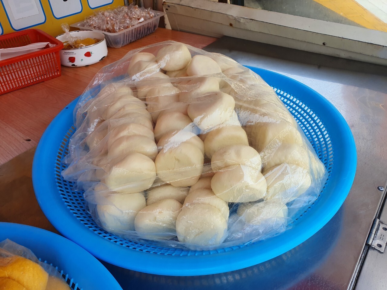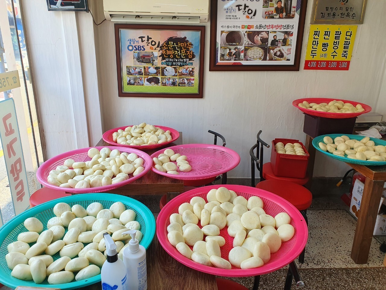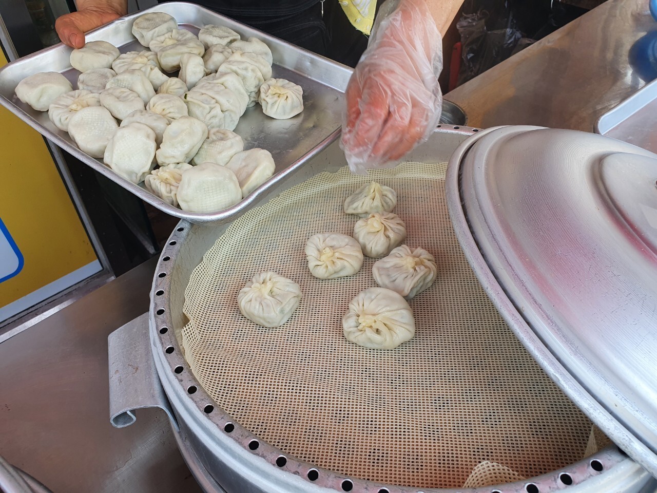 만두와 찐빵이 진열되어 있고
