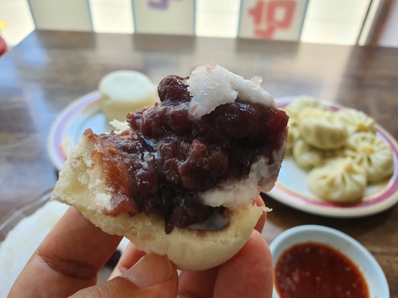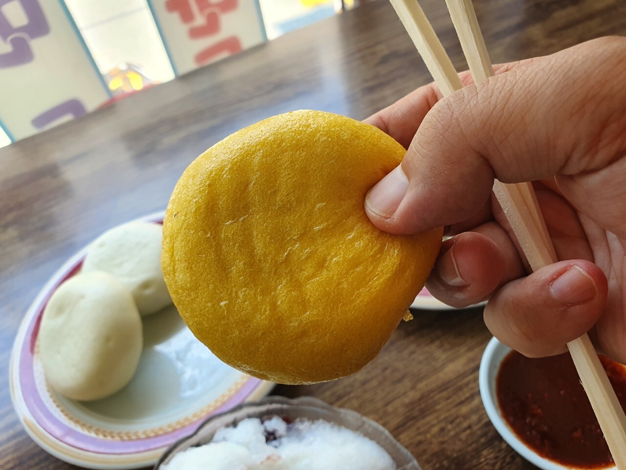 이날은 찐빵 피가 좀 두껍고 살짝 텁텁? 팥소도 적게 들어