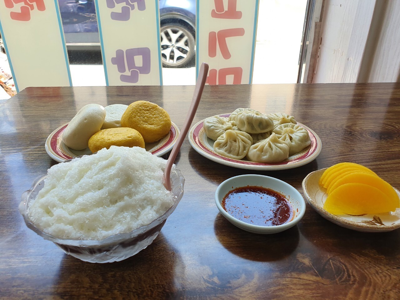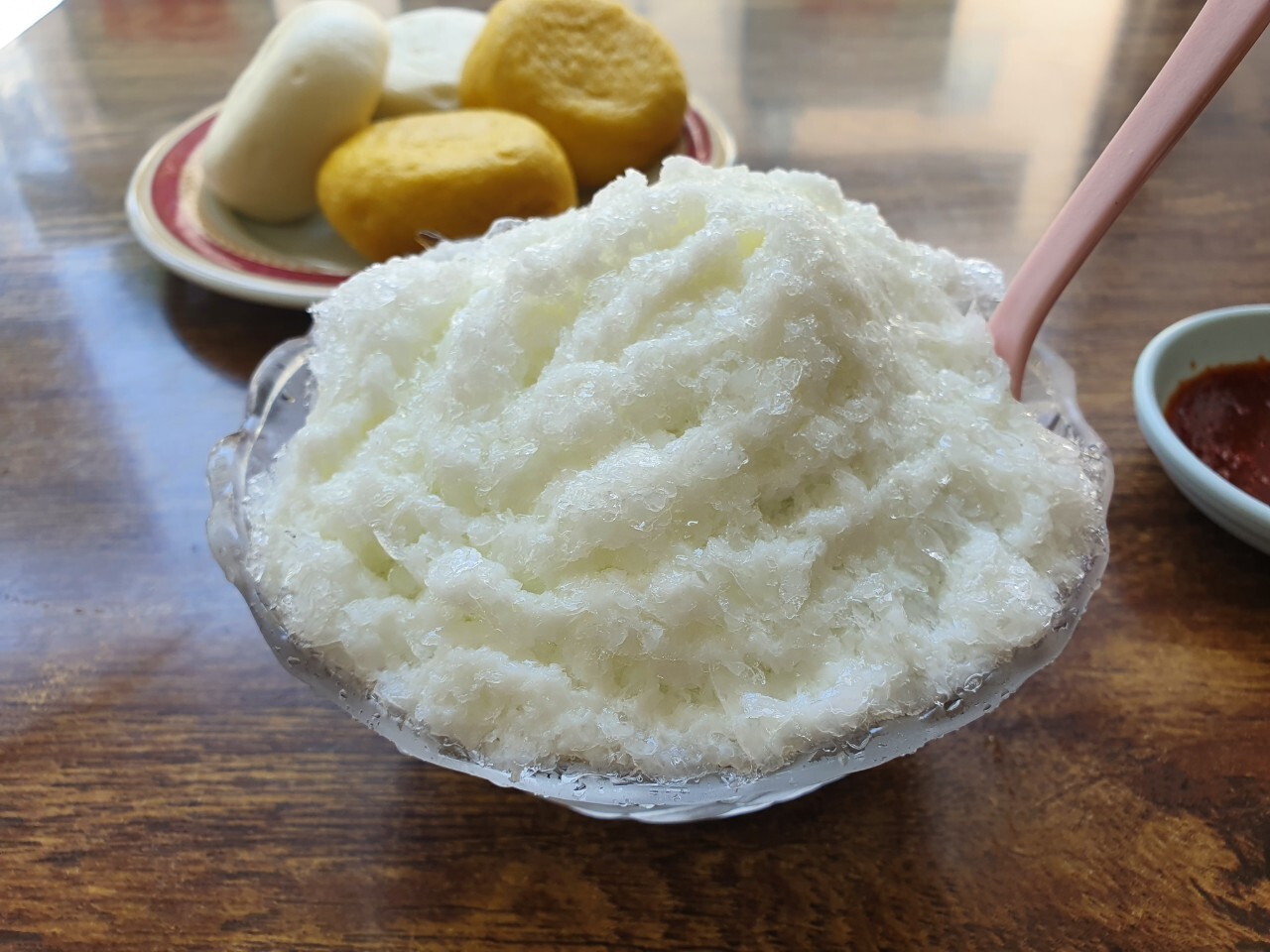 팥빙수 한 그릇에 찐빵 두 개, 만두 4개 먹었더니