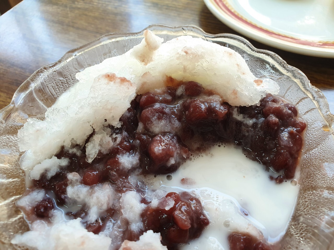 얼음을 갈아 단팥을 듬뿍 붓고