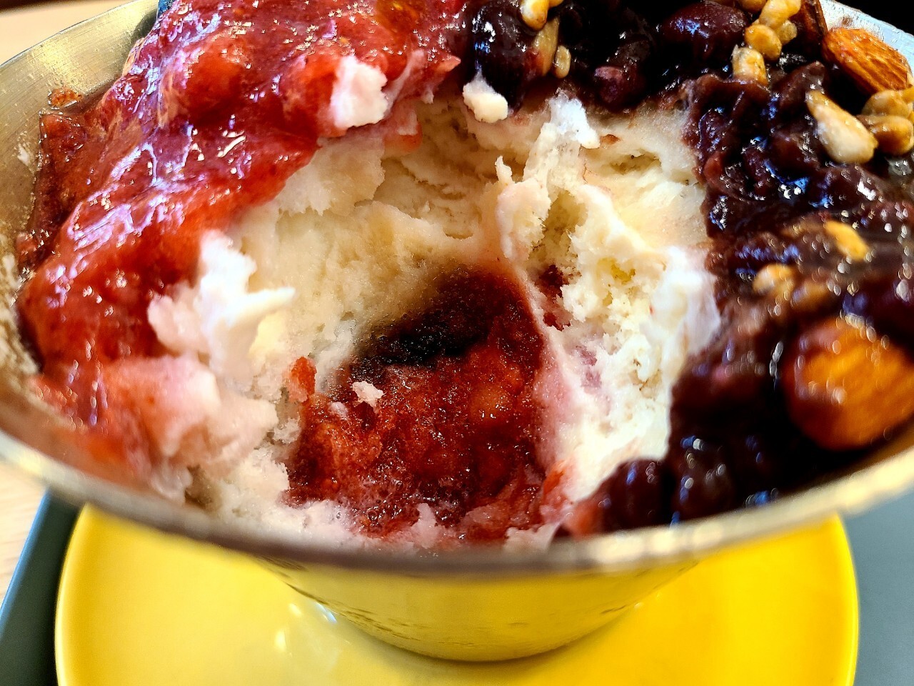 이제 3딸기 팥빙수 맛을 볼까나요~🤗🤗