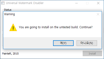 진짜로 실행하겠느냐는 메시지입니다. [예(Y)] 버튼을 눌러줍니다.