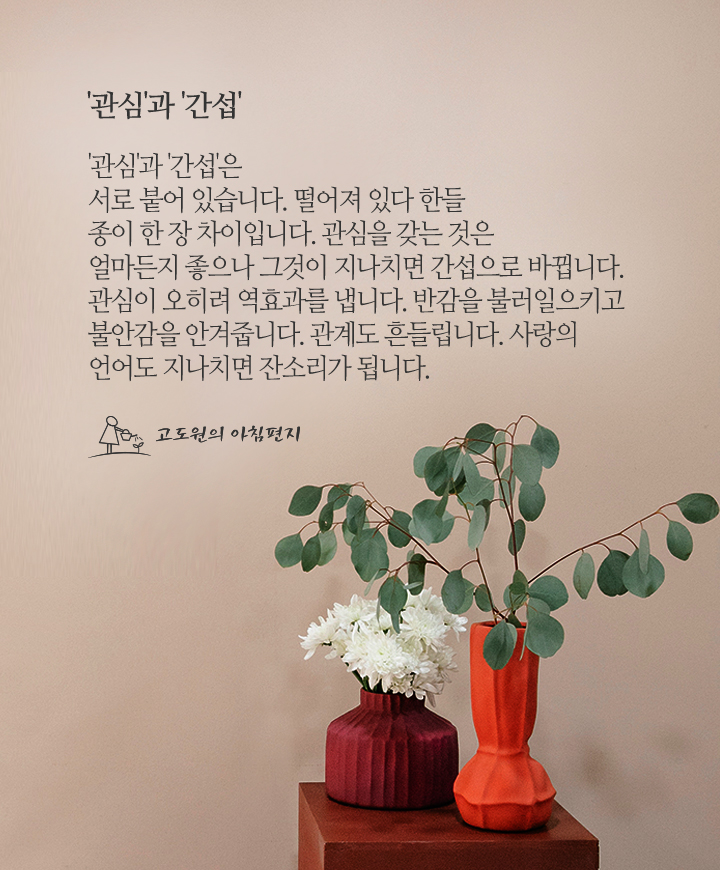[고도원의 아침편지💌] '관심'과 '간섭'