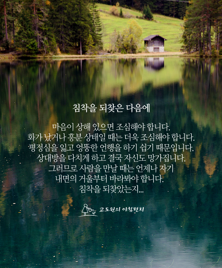 [고도원의 아침편지💌] 침착을 되찾은 다음에