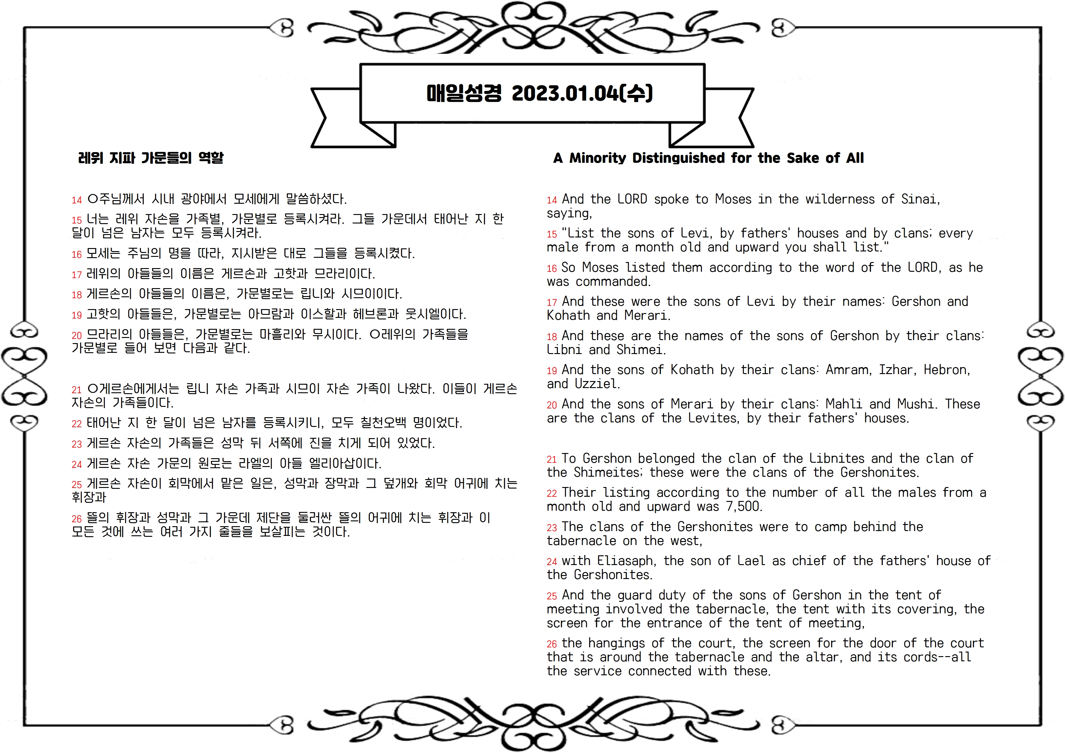 영한대조매일성경 2023.01.04(수)