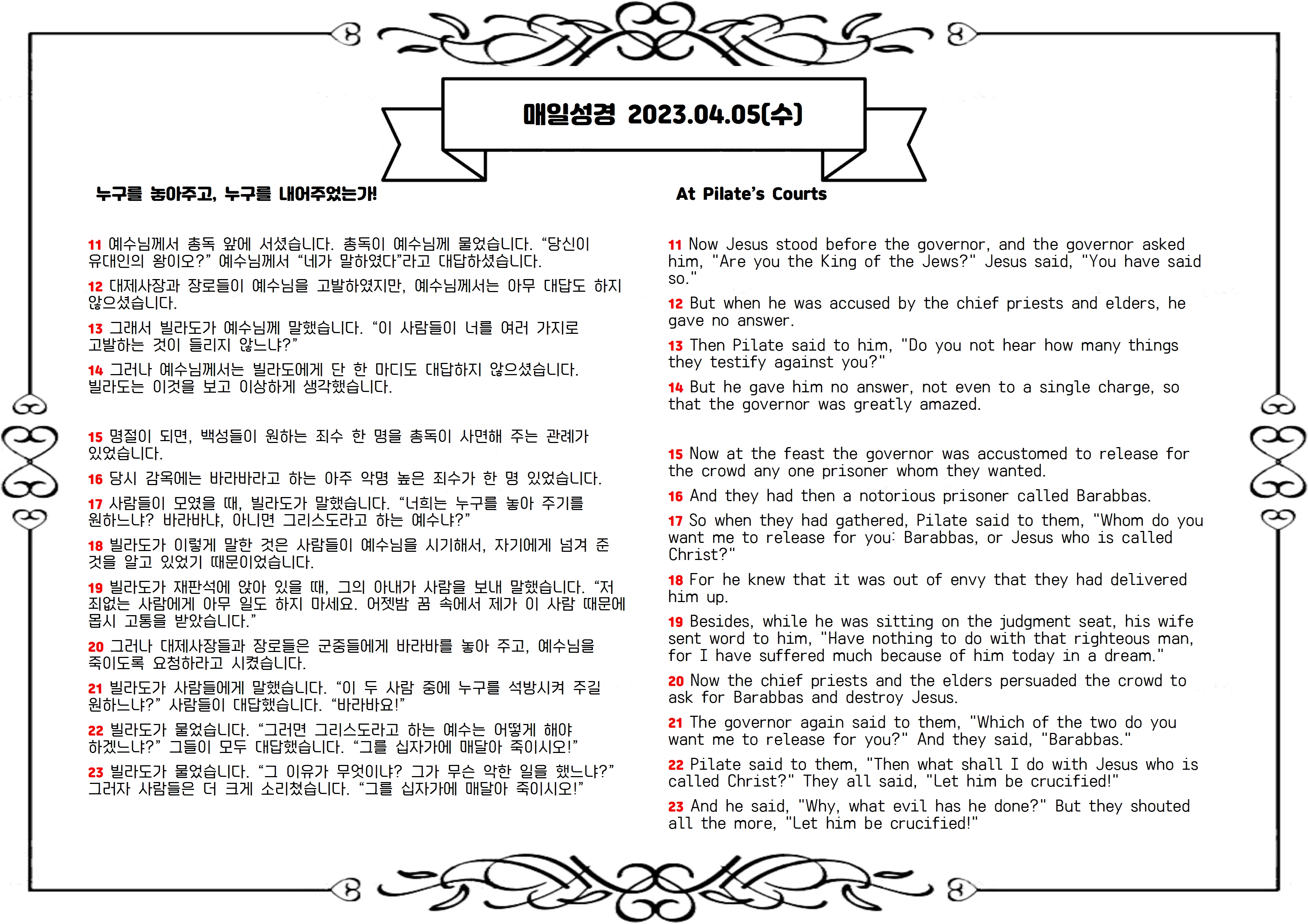본문 : 마태복음(Matthew)27:11 - 27:26