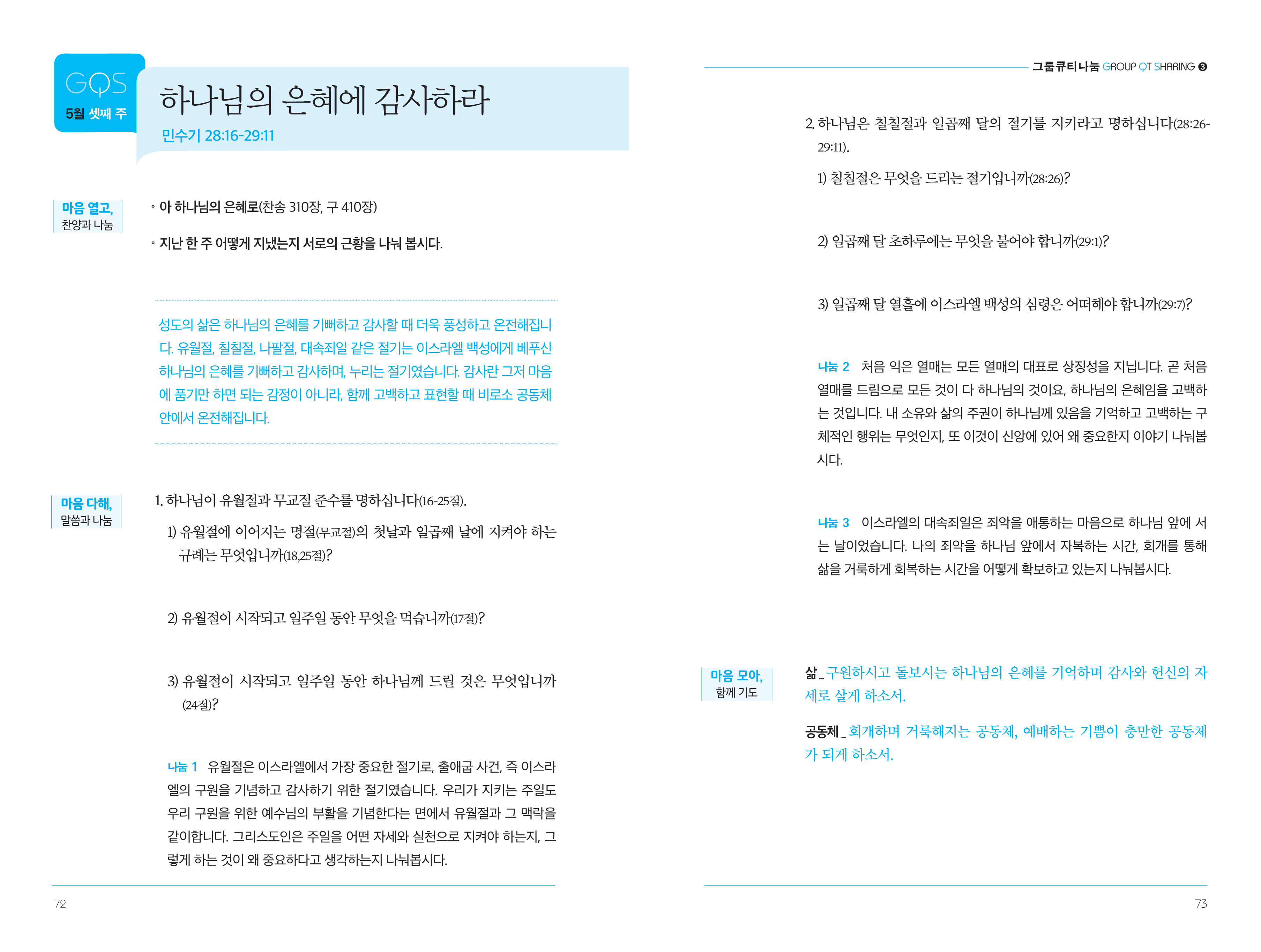갓 자손과 르우벤 자손의 욕심을 이스라엘 영토를 확장하는 기회로 바꾸십니다. 또 그들에게 요단 동편 땅을 확보하려면 더 적극적으로 가나안 정복에 나서라고 명령하십니다. 우리 개개인의 생각도 공동체를 위한 선한 영향력으로 바꿔 주시기를 기도하십시오.