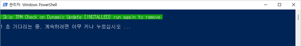 1) Skip_TPM_Check_on_Dynamic_Update_v2.cmd 파일 먼저 실행 → 녹색 메시지 창 확인