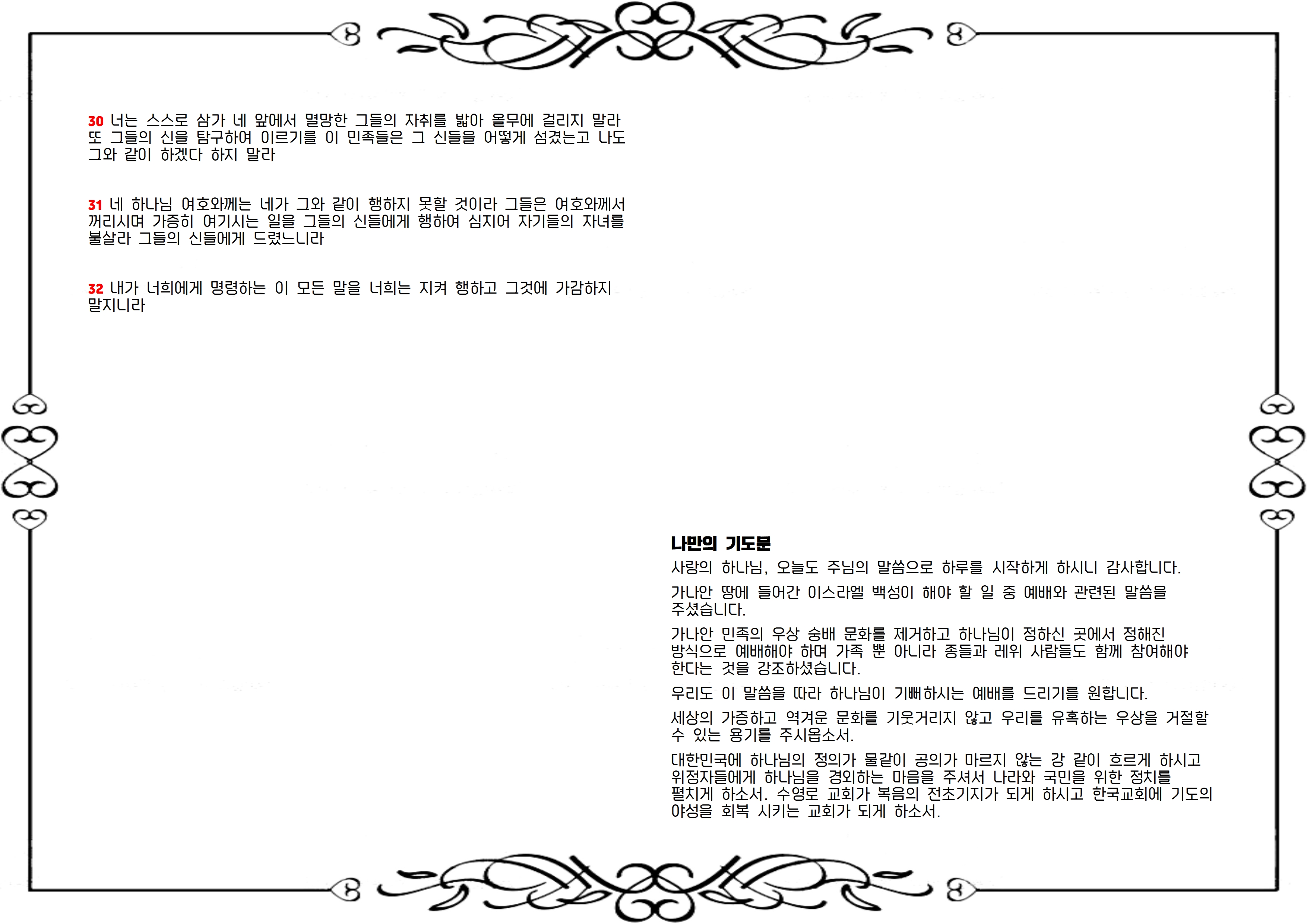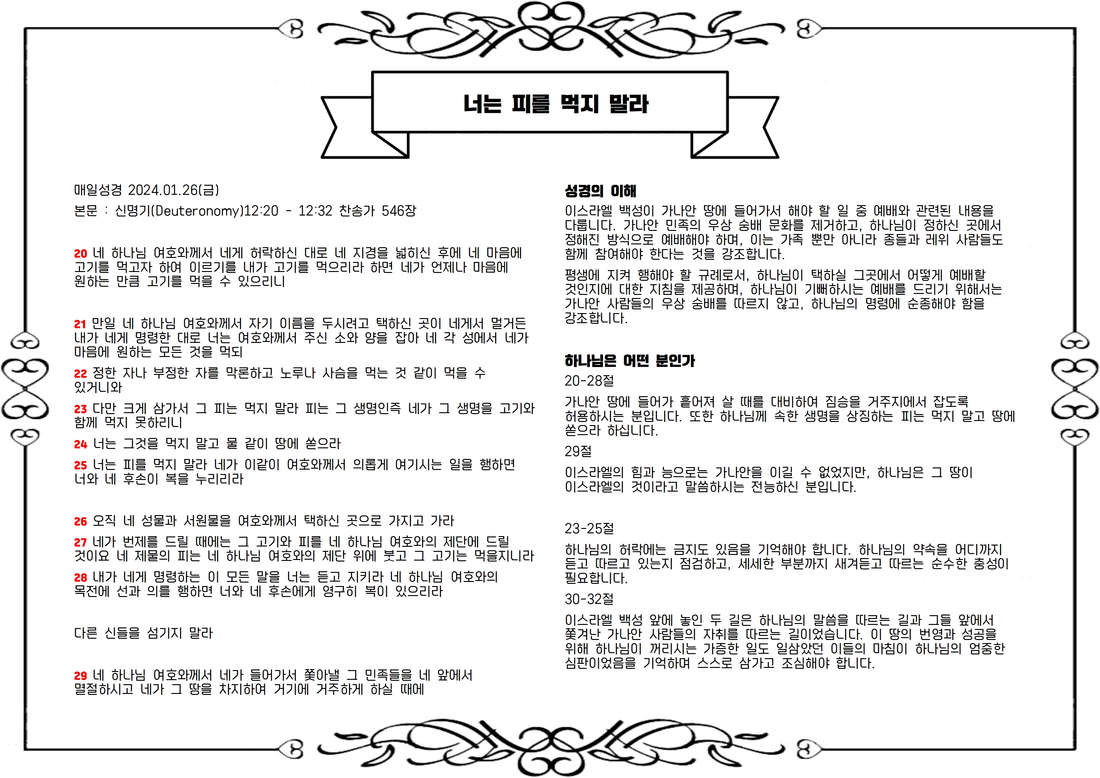 본문 : 신명기(Deuteronomy)12:20 - 12:32 찬송가 546장